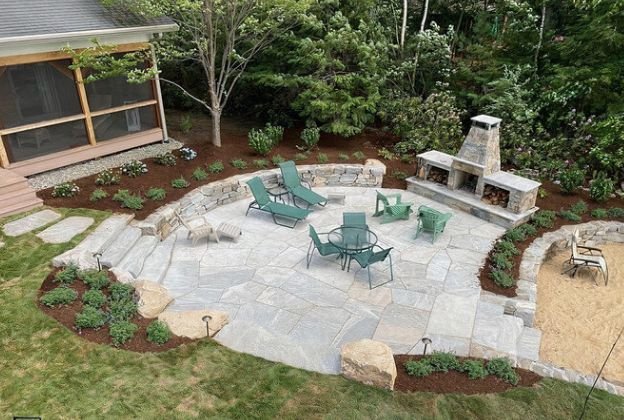 A stone patio is like an extension of your home. It provides usable outdoor space for furniture, gatherings, grilling, and makes an attractive and highly useful addition to any property. Different types of patios can be made from natural stone, bricks, or manufactured pavers. And there are endless layouts, designs, edgings, and details you can add to make your patio unique.
